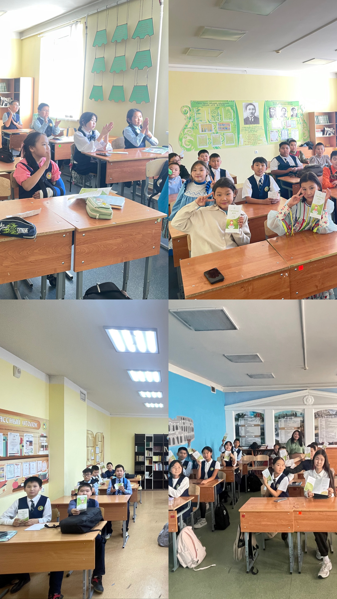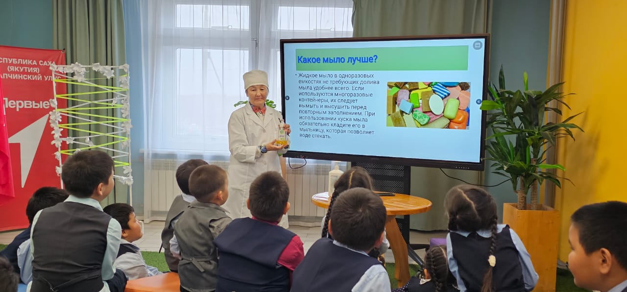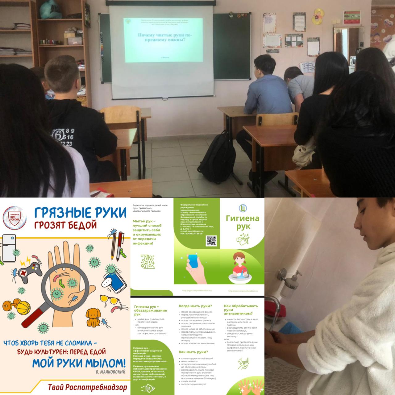Федеральным бюджетным учреждением здравоохранения «Центр гигиены и эпидемиологии в Республике Саха (Якутия)» в целях повышения грамотности детского населения в области гигиены и в рамках всемирного дня «Чистые руки» проведено 155 уроков по гигиенической обработке рук. В акции задействовано 41 образовательное учреждение Республики Саха (Якутия) и принято участие 2644 детей.