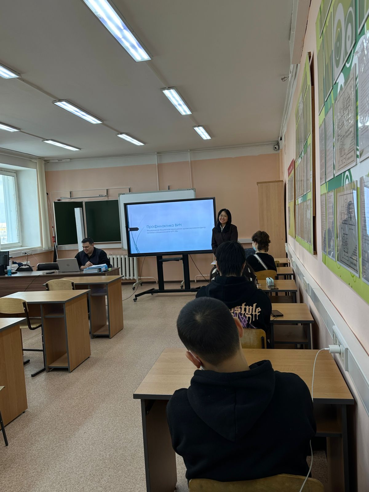 В рамках четвертого этапа лектория «Санпросвет» специалистами ФБУЗ «Центр гигиены и эпидемиологии в Республике Саха (Якутия)» для студентов Государственным автономным профессиональным образовательным учреждением Республики Саха (Якутия) "Якутский промышленный техникум им.Т.Г.Десяткина" основная тема: «Профилактика ВИЧ-инфекции». В ходе проведения мероприятий рассказали историю заболевания ВИЧ, как узнать ВИЧ-статус, меры профилактики. Важно, что участники смогли получить не только важную информацию, но и имели возможность задать вопросы. Общее количество участников составило 40 человек.