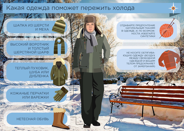 - обязательное применение шапки, шарфа, перчаток или варежек для защиты открытых участков тела;